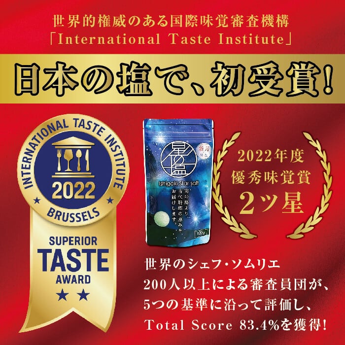 その海水を抽出し、降り注ぐ太陽の光と心地よい風を浴びながら、自然の成分をたっぷりと含んだ「星塩」が生まれました。